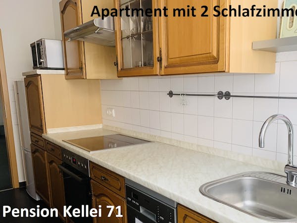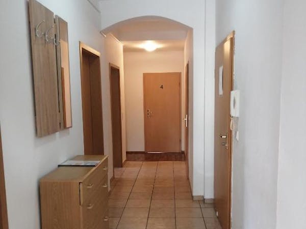Eine Wohnung im 1.Obergeschoss mit 2 Schlafzimmern, eine Küche und ein Badezimmer.
