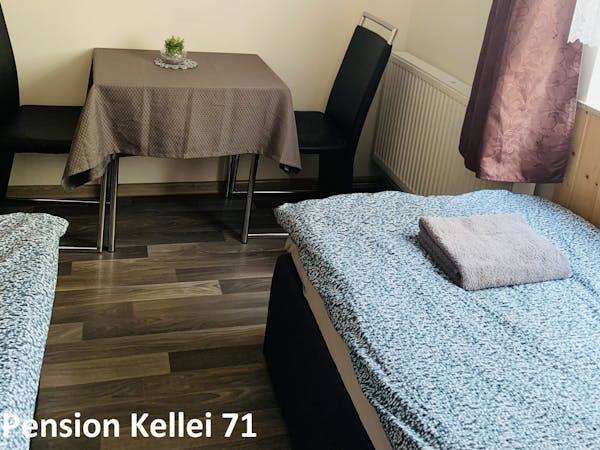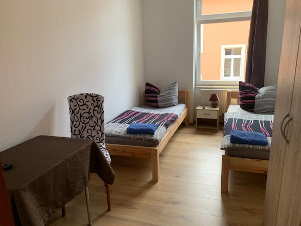 Doppelzimmer im dritten Obergeschoss mit eigenem Badezimmer und zugang zur Gemeinschaftsküche.