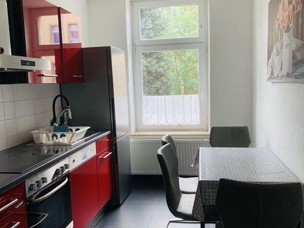 Eine Wohnung im 1.Obergeschoss mit zwei Schlafzimmern, eine Küche und ein Badezimmer