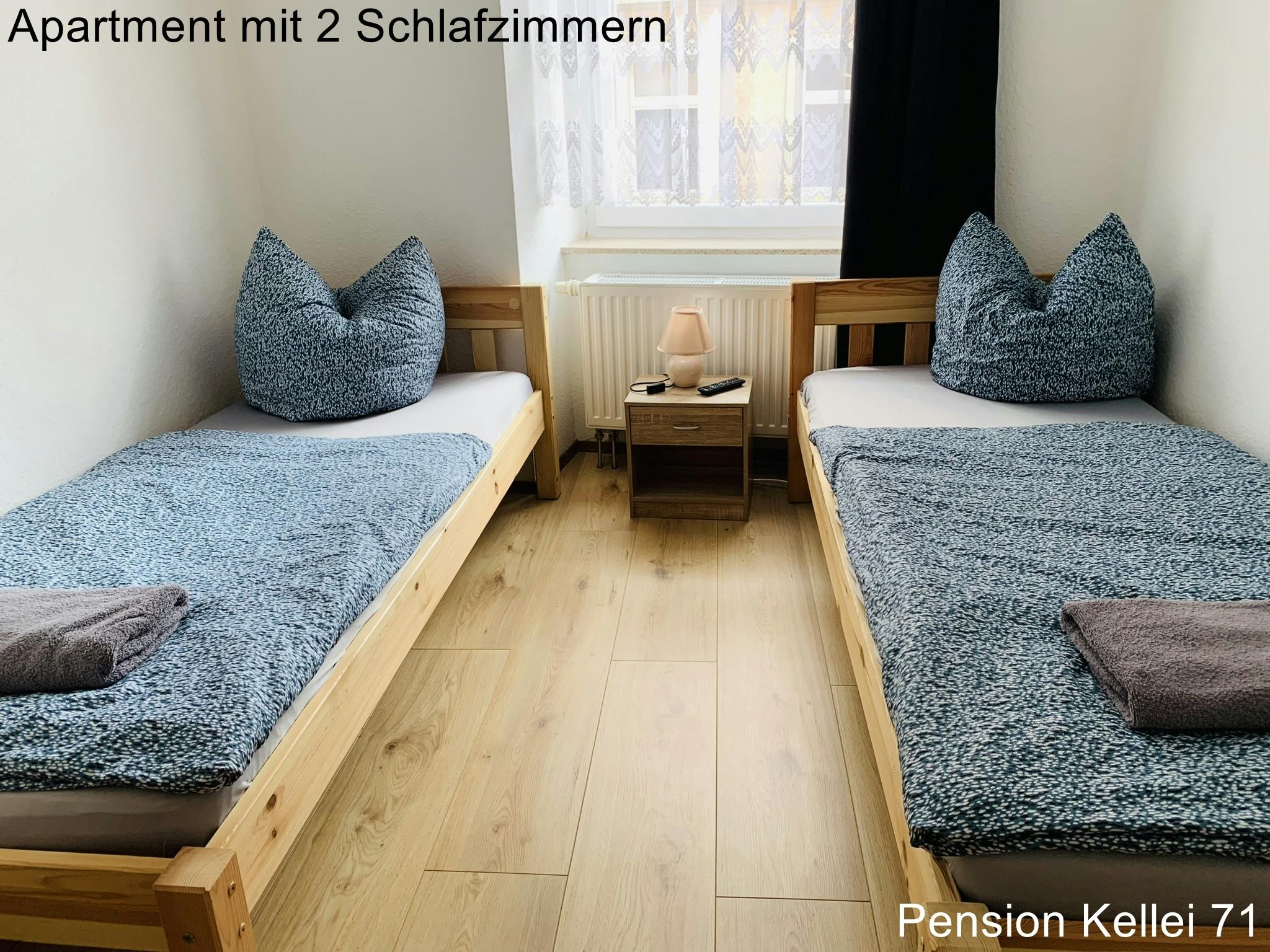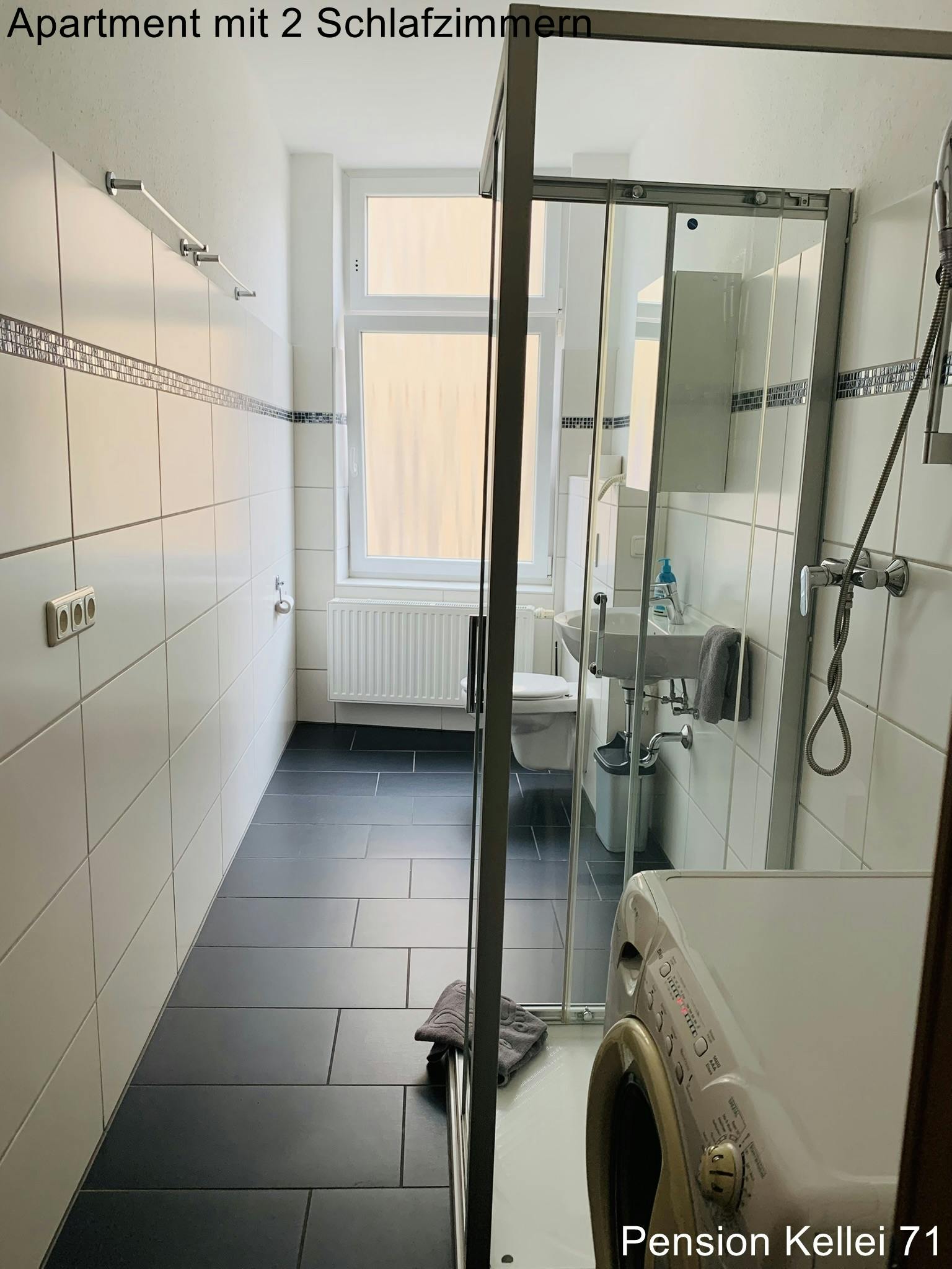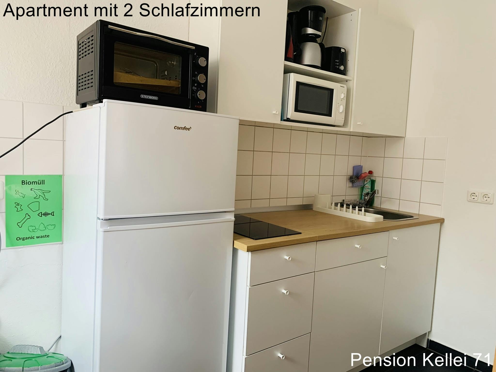 Eine Wohnung im Erdgeschoss mit 2 Schlafzimmern, eine Küche und ein Badezimmer.