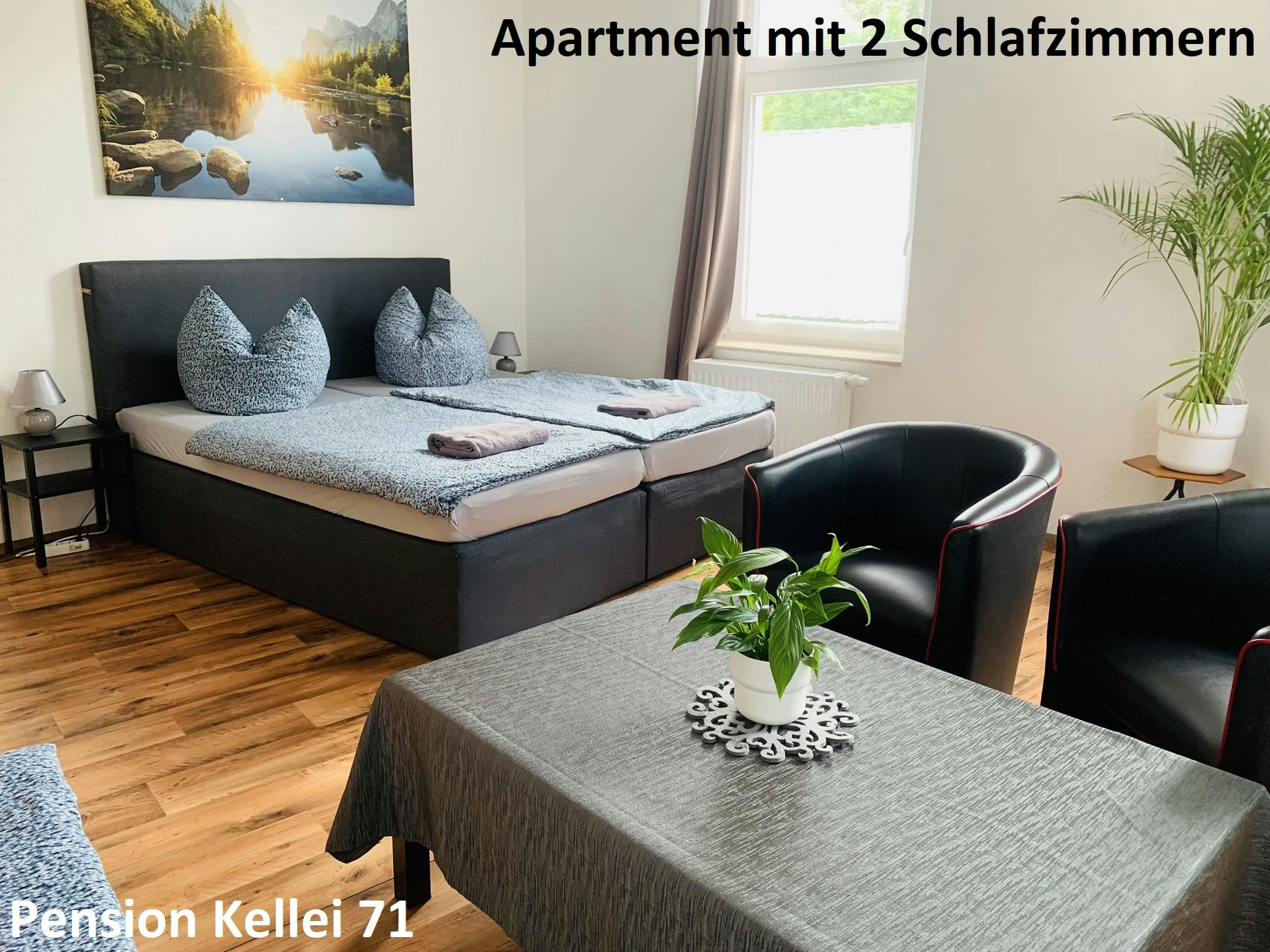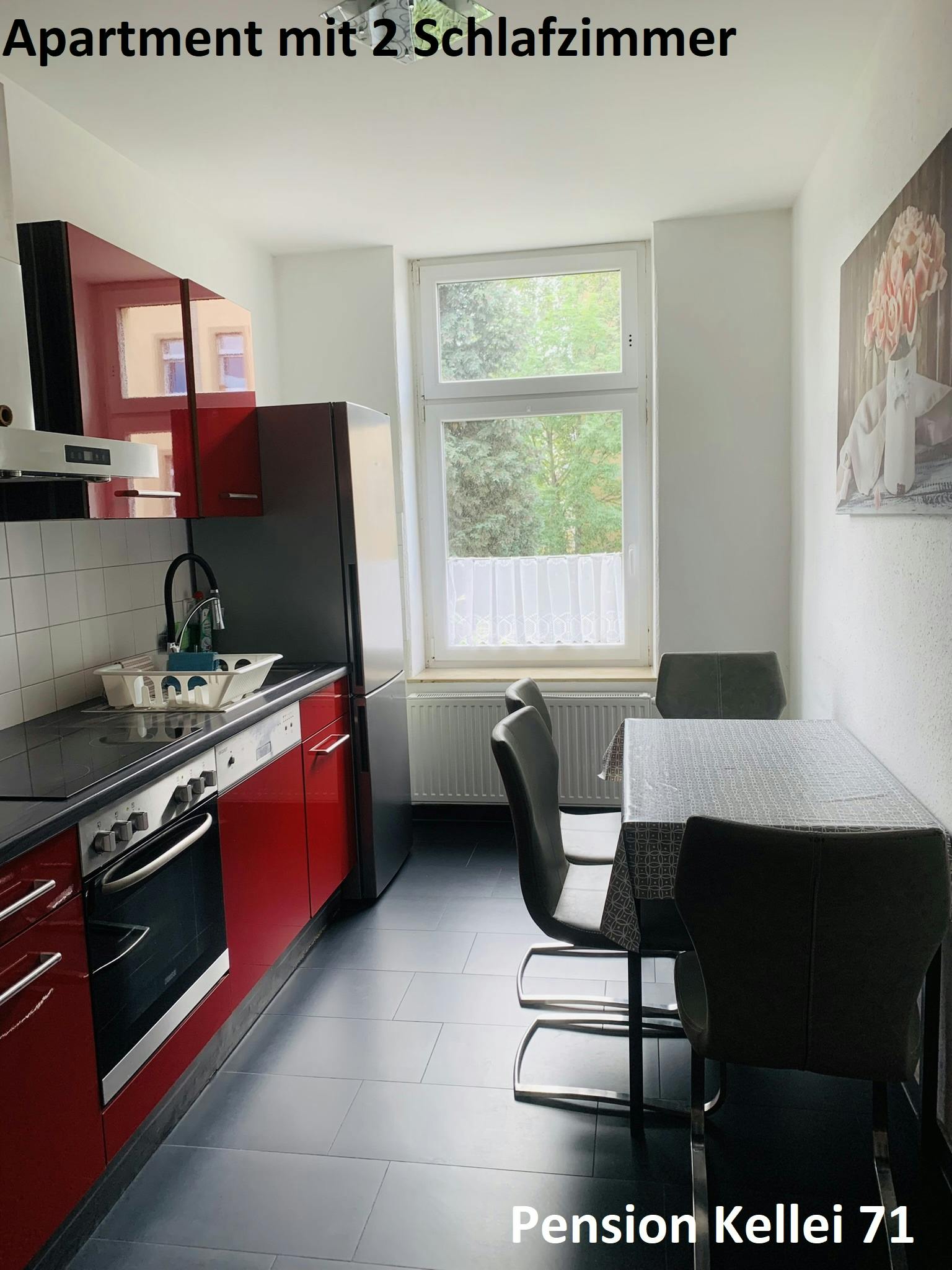 Eine Wohnung im 1.Obergeschoss mit 2 Schlafzimmern, eine Küche und ein Badezimmer.