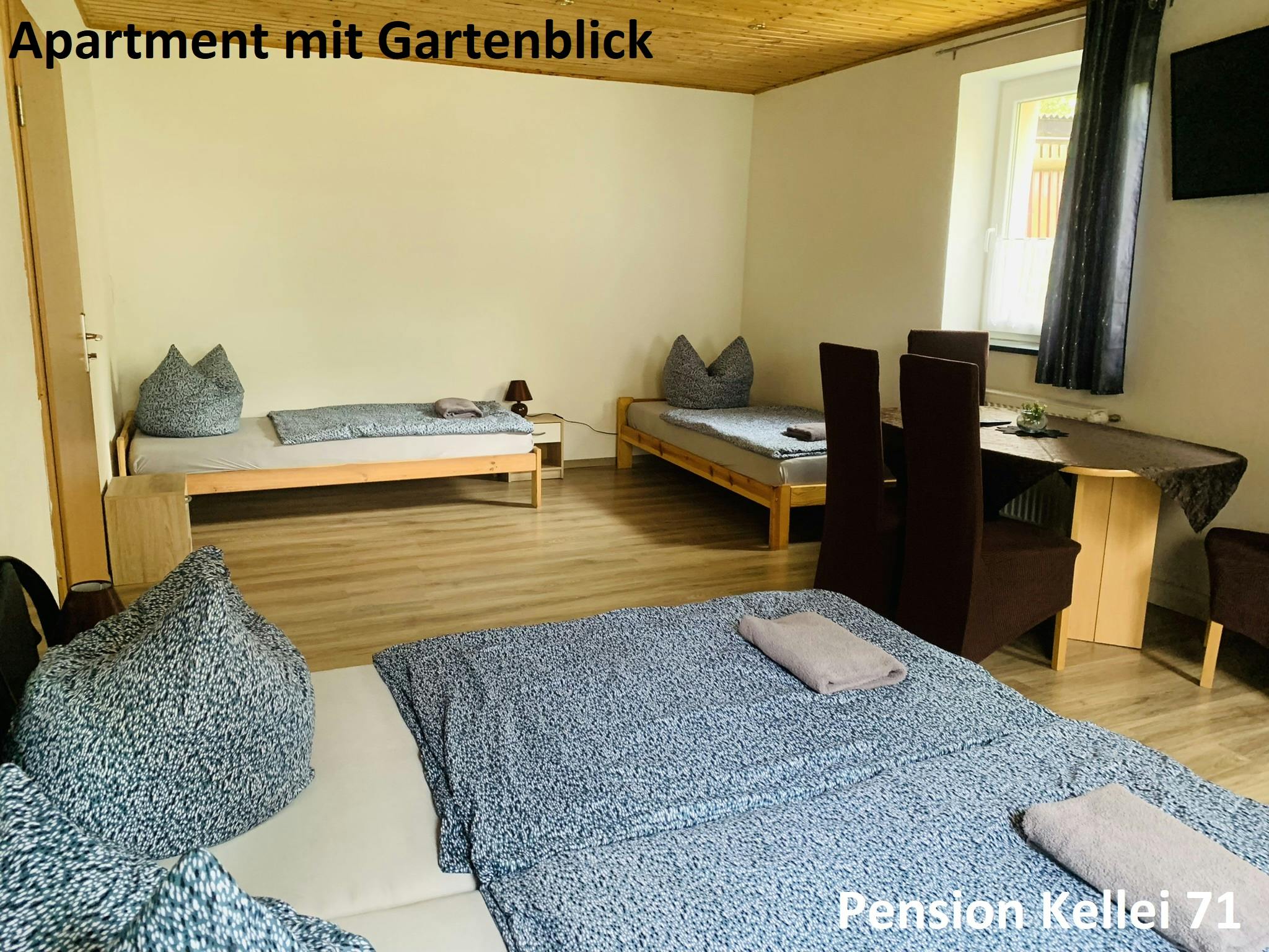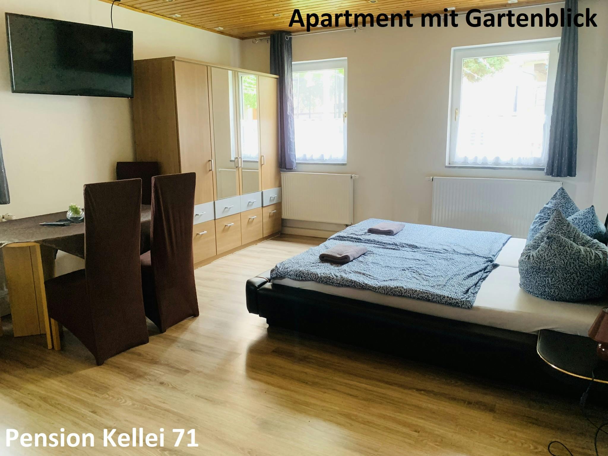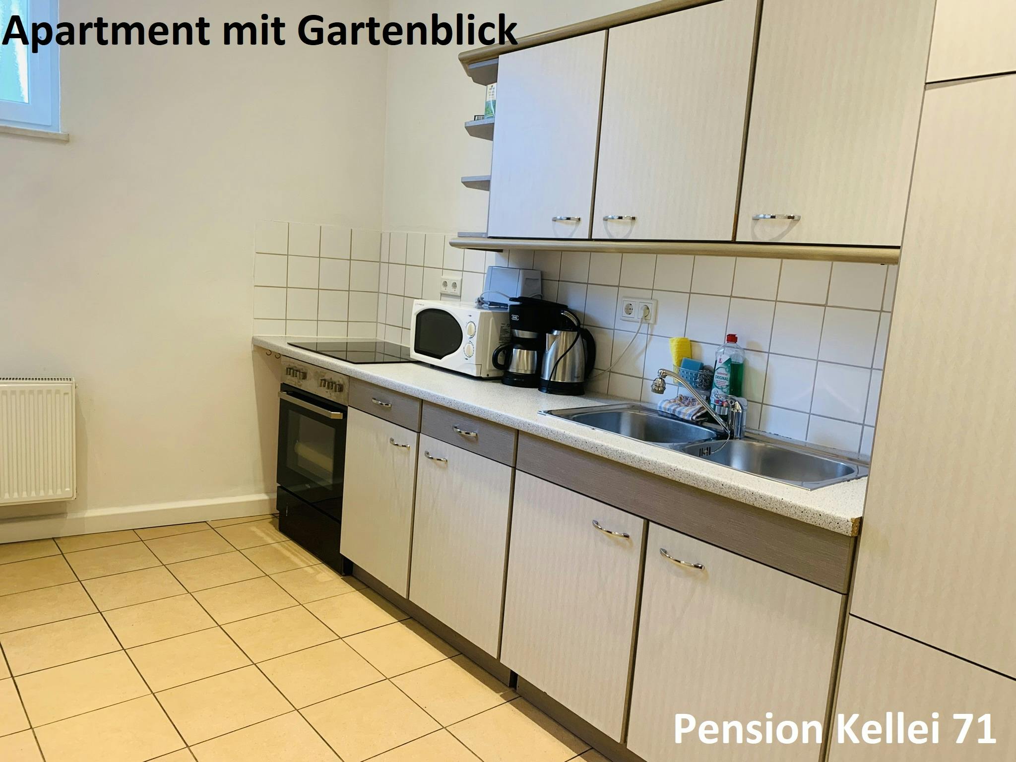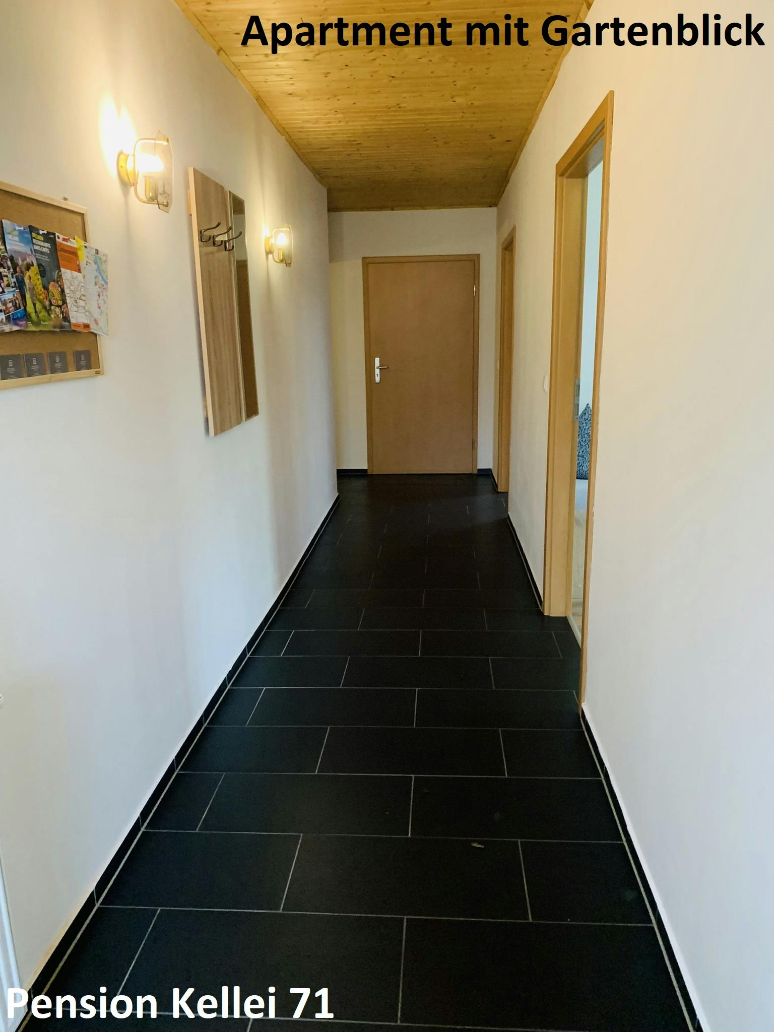 Eine Wohnung im Erdgeschoss (Eingang ebenerdig) mit 2 Schlafzimmern, eine Küche und ein Badezimmer.